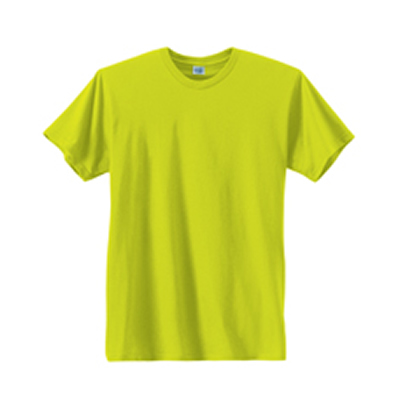 Carton Qty 12. Non-ANSI T-shirt. 5.5 oz 50/50 polyester/cotton. Shrink and wrinkle resistant. Double needle sleeves and hem. Bulk packed. Sold by the dozen (per size) only. Sizes Small-4X. Safety Green