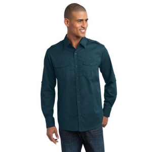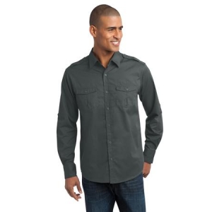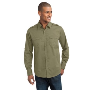 Perfect for uniforming, the soil-release finish helps maintain a spotless, professional look. Epaulets and roll sleeves give this colorfast shirt contemporary, military-inspired style.